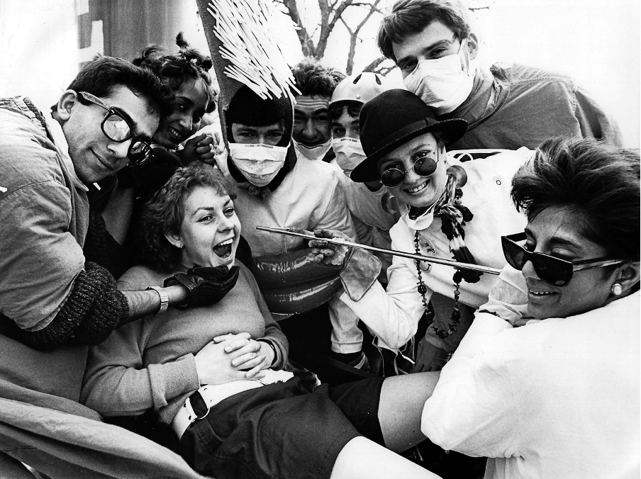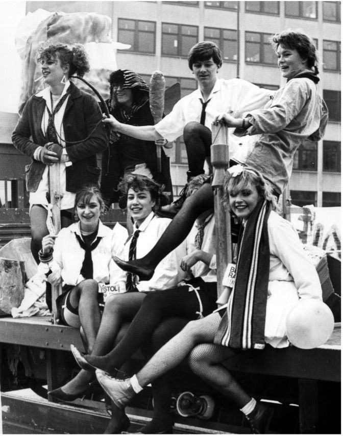 6. And ANOTHER example of an absurdity during the 1988 RAG parade: there will be some examples from other years, but 1988 seems to have been the golden year for inventive ideas. Here we have Tracey Belsham, being ‘injected’ on the Bristol Dental Hospital float. Dentists, eh?