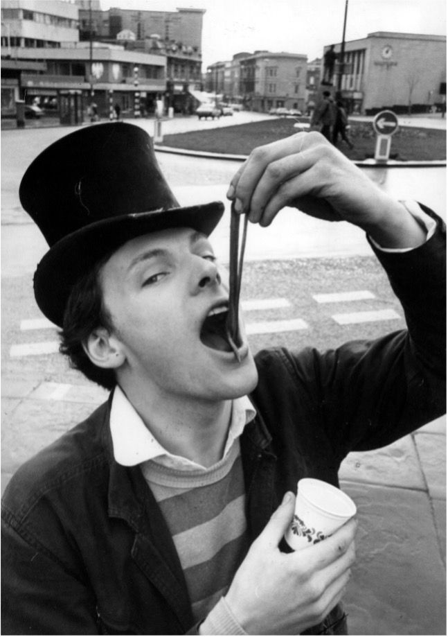 9. Look away if you’re planning to eat soon, or ever again. The following photograph shows a Mr Stephen Joyce, doing his bit for Bristol’s RAG week of 1981 – that is, attempting to eat half a pound of live worms. A commitment to charitable fundraising indeed, outweighing that of Bob Geldof, or anyone, really.