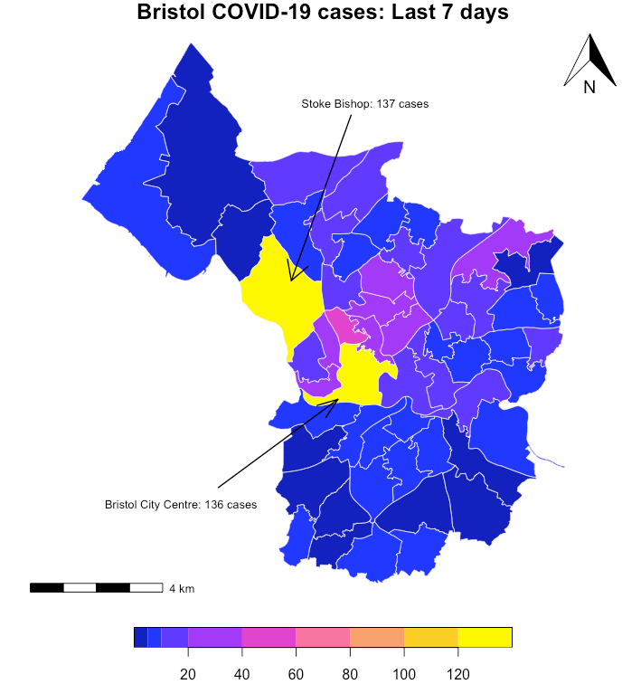 Most confirmed cases in Bristol have come from Stoke Bishop and Bristol’s city centre, two areas with large student populations. Other areas with notable rises include Cotham and Clifton East.