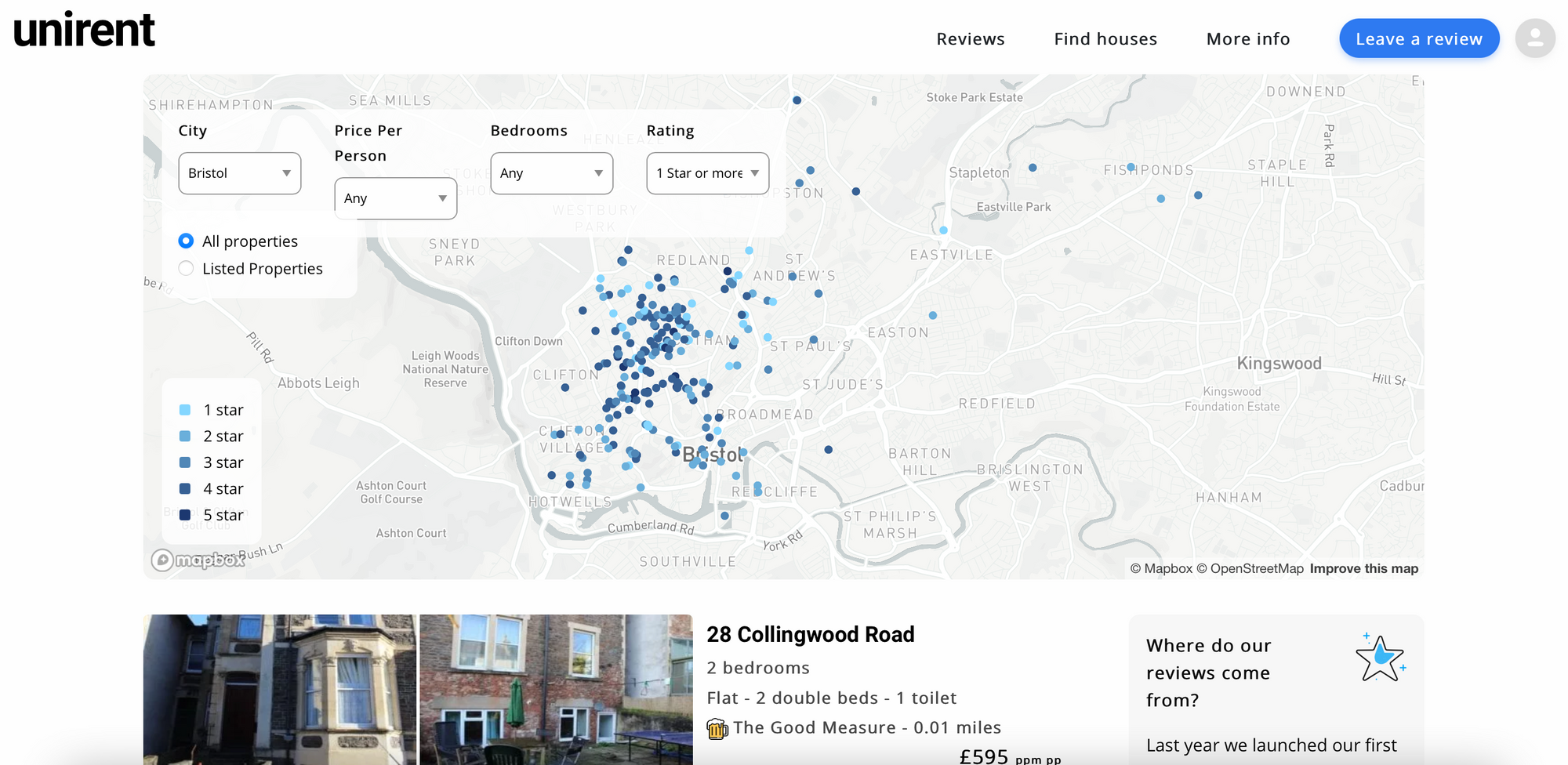 Unirent is a website where students can search for and post reviews of their houses based on a range of useful features, including the utility of bedrooms and living space, quality of communication with the landlord and the relationship with the neighbours.