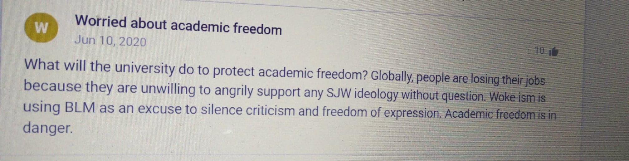 - ‘Woke-ism is using BLM as an excuse to silence criticism and freedom of expression. Academic freedom is in danger.’