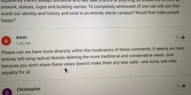Josie Gill, Lecturer in Black British Writing, tweeted during the livestream ‘Reading some of the comments on the all staff live stream [...] wow, lots of anonymous racists at Bristol Uni!’