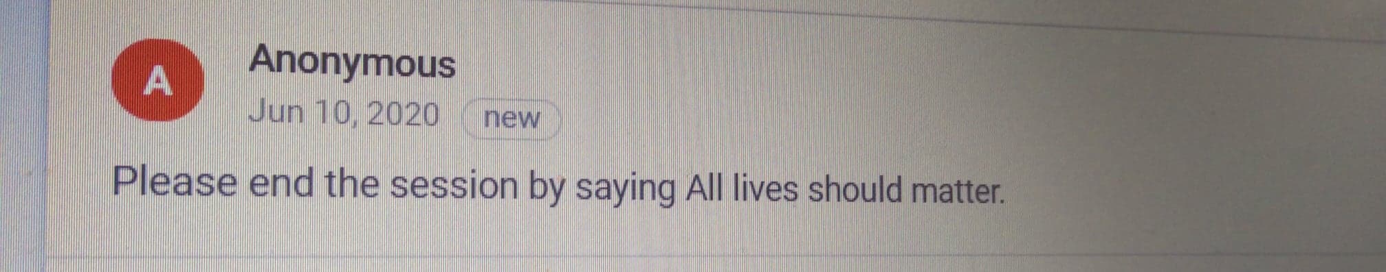 - ‘Please end the session by saying All lives should matter.’