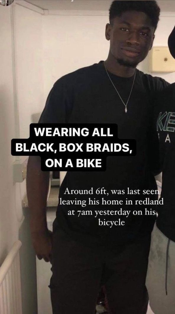 Olisa was last seen at 7am on Saturday (1 May), riding his bike from his home in Redland.
