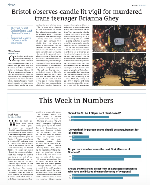 Bristol has one of the best and most diverse music scenes in the UK. The Music section must cover student musicians, local artists, student-run events and gigs in Bristol. The content should be a balance of local news, reviews, interviews, and longer features or discussions that appeal to the student community.