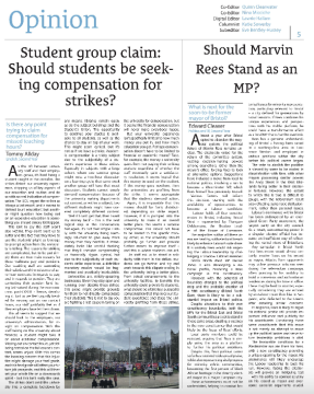 Opinion seeks to represent the student body's full range of views. The Opinion team's role involves attracting writers of varying political and social stances to get the views of students from all walks of life. In covering the views of students, Opinion provides a crucial ability to understand what matters to students, which can help bring about change. It also provides the opportunity to enhance, and appeal to, the University’s sense of community.