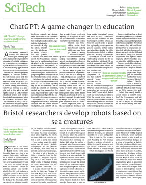 Both Bristol as a city and UoB are global research leaders. This means that there are plenty of science and technology stories, breakthroughs, and entrepreneurial successes. The SciTech section should concisely relay this exciting information to the general student body, with an accessible and accurate approach.