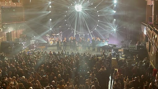 I became speculative again at the display’s use of AI as a ‘momentary lapse of reason.’ I spent a while considering the levels of irony, if the generated videos of overtly sexualised women’s silhouettes, strange singing robot faces and Orwell-esque flashing symbols were an easy design choice, accidentally playing into everything Pink Floyd’s anti-establishment, anarchist viewpoints oppose. In this case, the death of self-created art becomes a depressing notion to background an otherwise spectacular performance. Or perhaps it is very rock and roll, when the industry has always played into the irony of commercial pop culture, whilst contributing to it directly. Or perhaps I’m reading too much into it. Either way, the entertainment factor was entirely there, and nothing much could detract from the music.