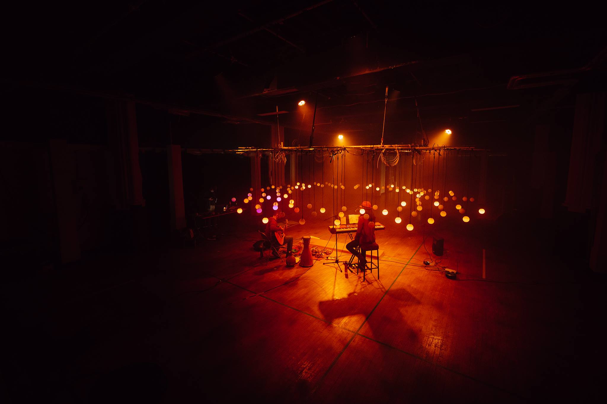 ‘We’ve built this rig into the Trinity space where we’ve been experimenting with turning all these orbs that are hanging in the space… into a specialised instrument. So each of those orbs is a speaker and a mini computer.’