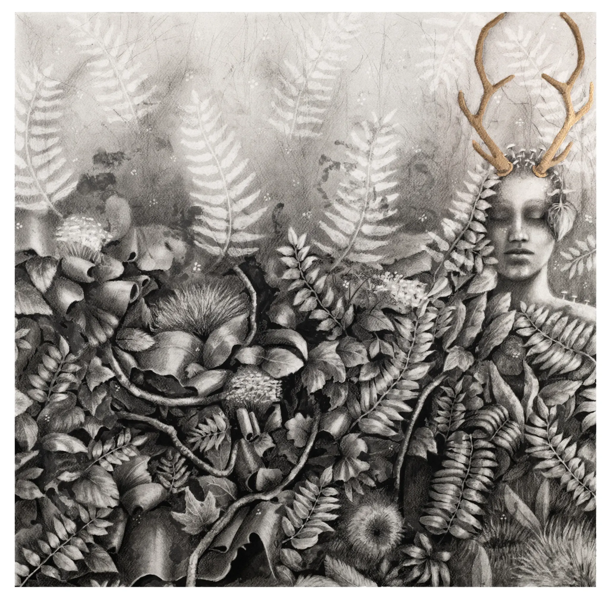 Sam Baggott is a relatively new artist living in Bristol, who is inspired by nature and our human connection to it. After working as nurse during the pandemic and raising a family, Sam’s art has become a therapeutic return to her early passions. She studied art at A level and for a brief time at university. After first completing portrait and pet commissions for friends and family, she has come to experiment with her style and artistic voice and landed on something truly unique. Her mostly black and white pieces blend the natural and the human with restrained bursts of colour that often result in a magical and whimsical feel.