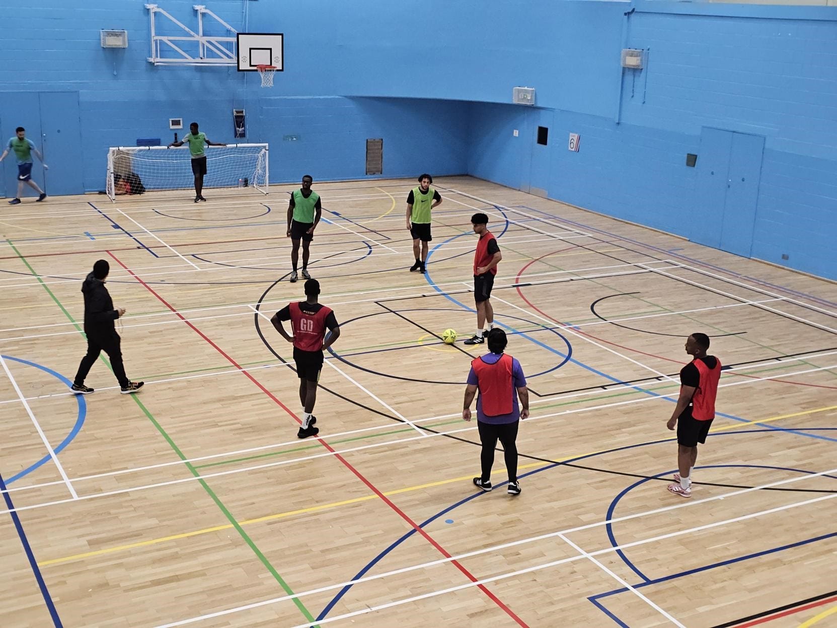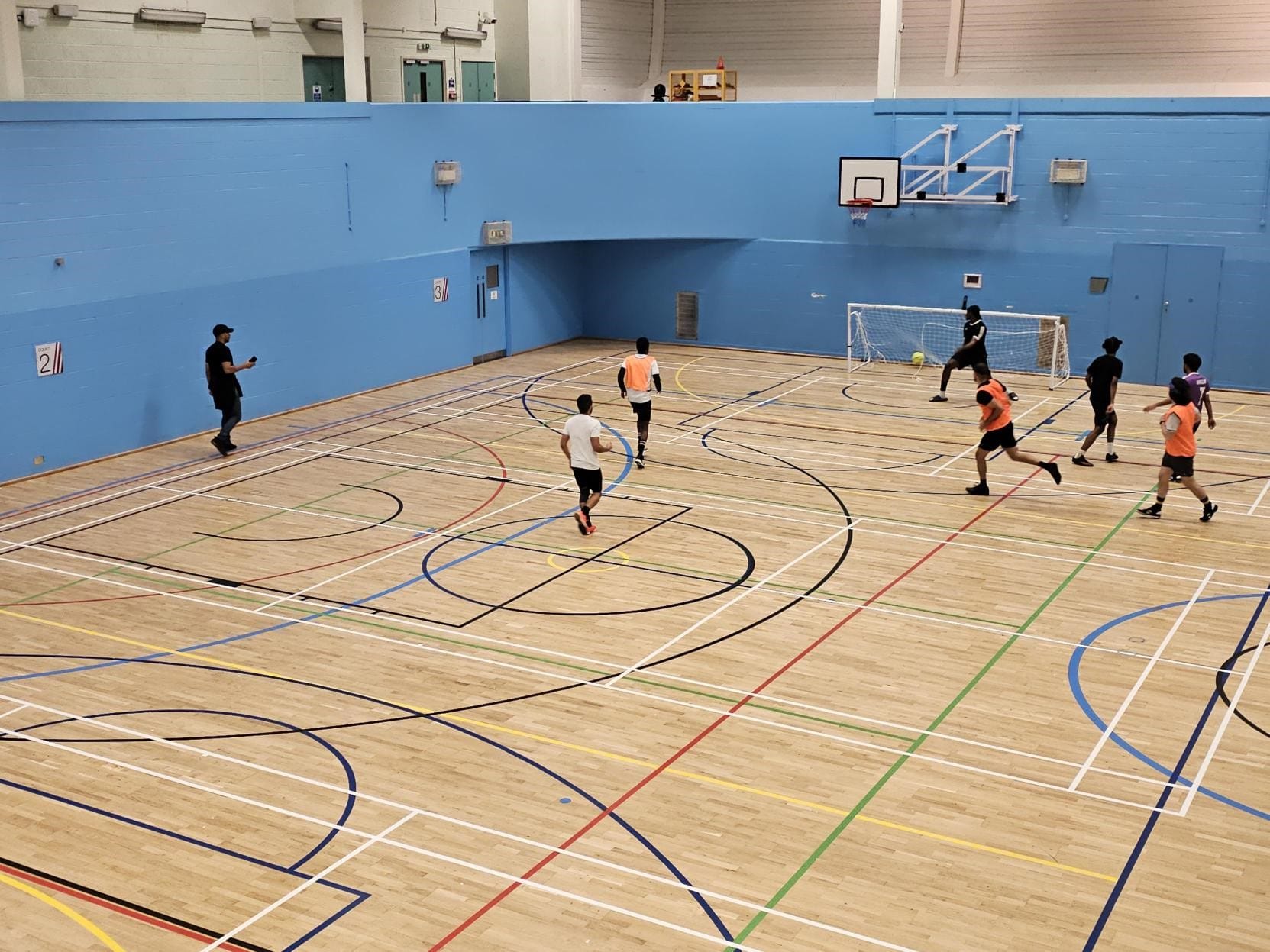 The second/final round of the tournament from 19:00-20:00 was well attended, however not enough players were available for 4 teams to be created, so instead we split the group into 2 teams and played a longer final. The sports hall was split in half, and the players played 5-aside using the small goals so that the game could be quicker and adaptable to the smaller group. It took a while to get everything set up and create teams, so we began at 19:12pm and played for 25 minutes. We were originally meant to have a 2-minute break in between but I played 25 minutes straight, which allowed the players to play a longer final. Afterwards, we had a 2 minute break with a 10 minute half afterwards. The prizes up for grabs for the winners, were vouchers that could be used at the Source cafés in Bristol.