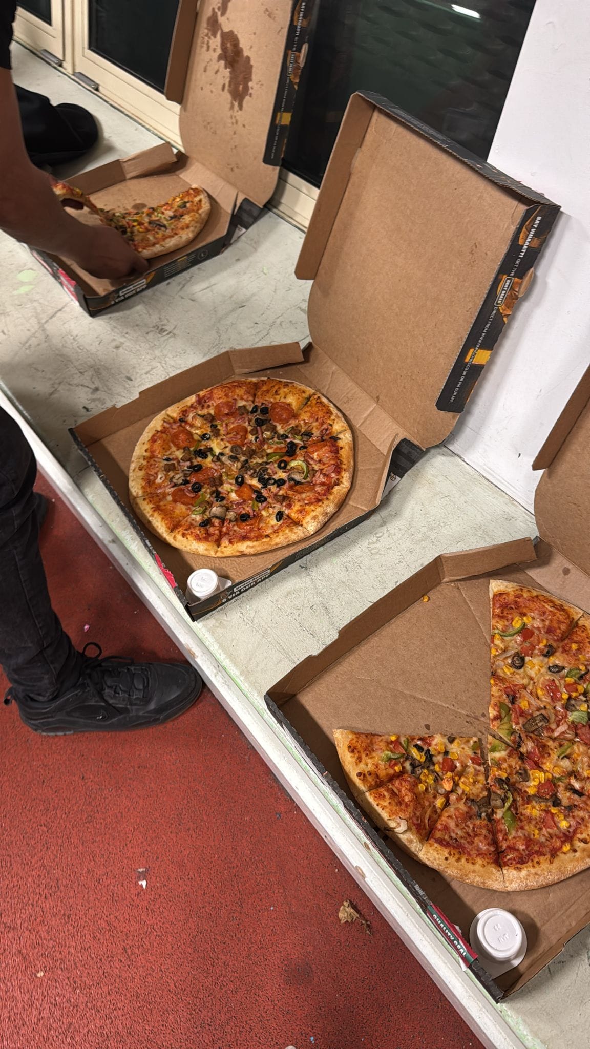 After the final whistle, the winning team took a group photo to celebrate their victory, then we all took a collective photo to celebrate the final of the event. We then went upstairs, where Leaver had set out some Papa John's pizzas for us to eat with different toppings to suit everyone's tastes. Additionally, Leaver took the time to speak to us, referees, about opportunities available at the University of Bristol such as Gamechangers, who fund qualifications for students in sports refereeing or coaching. I also made myself available for any other refereeing opportunities like this one, so it is important to keep a look out for them! It was very nice to see the celebration of Black History Month at Bristol and see how sporting events can bring together and unite students of different backgrounds, celebrating diversity.