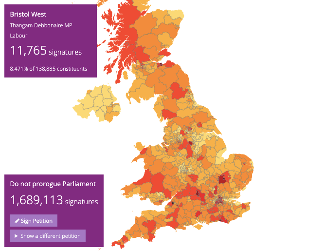 This petition, whose sentiment has been widely supported by Bristol politicians, states that 'Parliament must not be prorogued or dissolved unless... the Article 50 period has been sufficiently extended or the UK's intention to withdraw from the EU has been cancelled'.