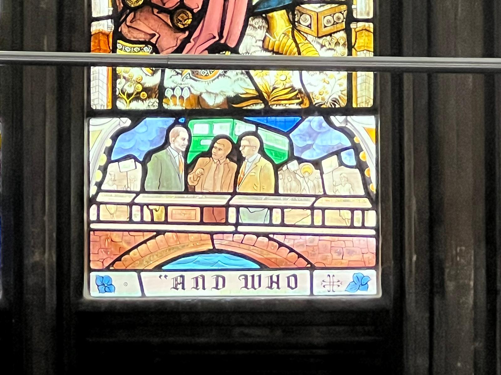 The culmination of the ceremony was marked by the unveiling of the newly installed stained-glass panels at the North Transept Window of St. Mary Redcliffe Church. One of the panels depicts Jesus among the protesters in 1963.