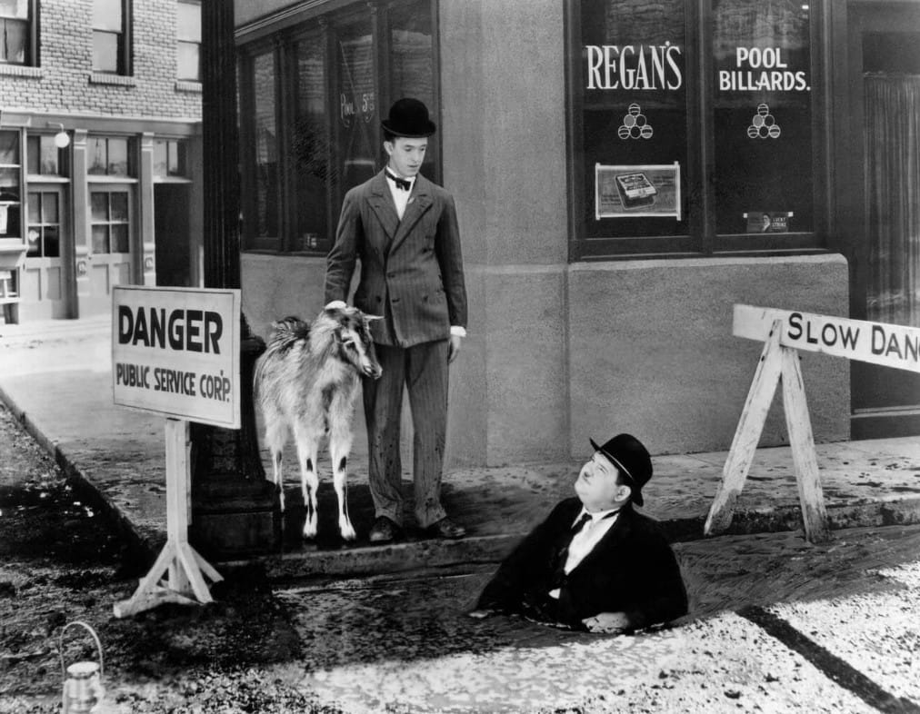 Angora Love was my personal favourite of the three films to play, for the plot’s sheer absurdity. A goat insists on following the iconic Laurel and Hardy duo home, and they reluctantly agree to care for it despite fearing the wrath of their landlord. They experience many close shaves in being outed in concealing the goat, however, an unfortunate blunder occurs when attempting to bathe the goat that leads to its exposure. The onscreen personas of the goofy, air-headed Stan (Laurel) and the constantly exasperated Ollie (Hardy) are magnetic; they fit together on stage so naturally, as they both push and pull, give and take. It’s not hard to see how these icons have inspired future generations of physical comedy duos, such as the Chuckle Brothers, or Dick and Dom.