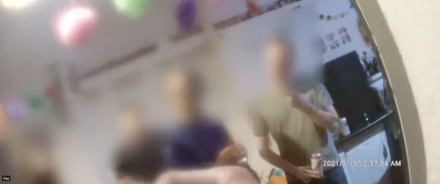 A person can be heard saying ‘get out police are here’, before A & S Police enter the property telling attendees ‘you are not going anywhere’ and instructing that those present turn off the music and present their ID.