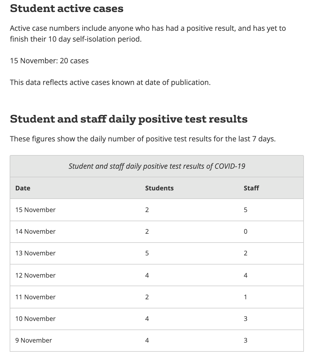 Bristol Uni's website states that as of 15 November 2021 there are 20 active cases of COVID-19 amongst students at the University, as well as a number of positive cases circulating amongst staff.