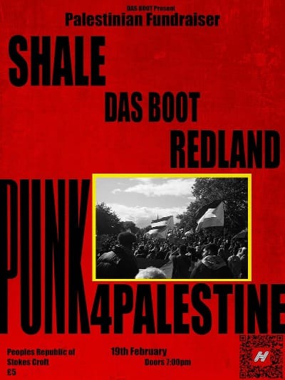 Inspired to act amid the crisis in Gaza and energised by a desire to introduce our excitingly ambiguous yet heartfelt music to a city we love, DAS BOOT presented ‘Punk 4 Palestine’ at People’s Republic of Stokes Croft, alongside bands Redland and Shale.