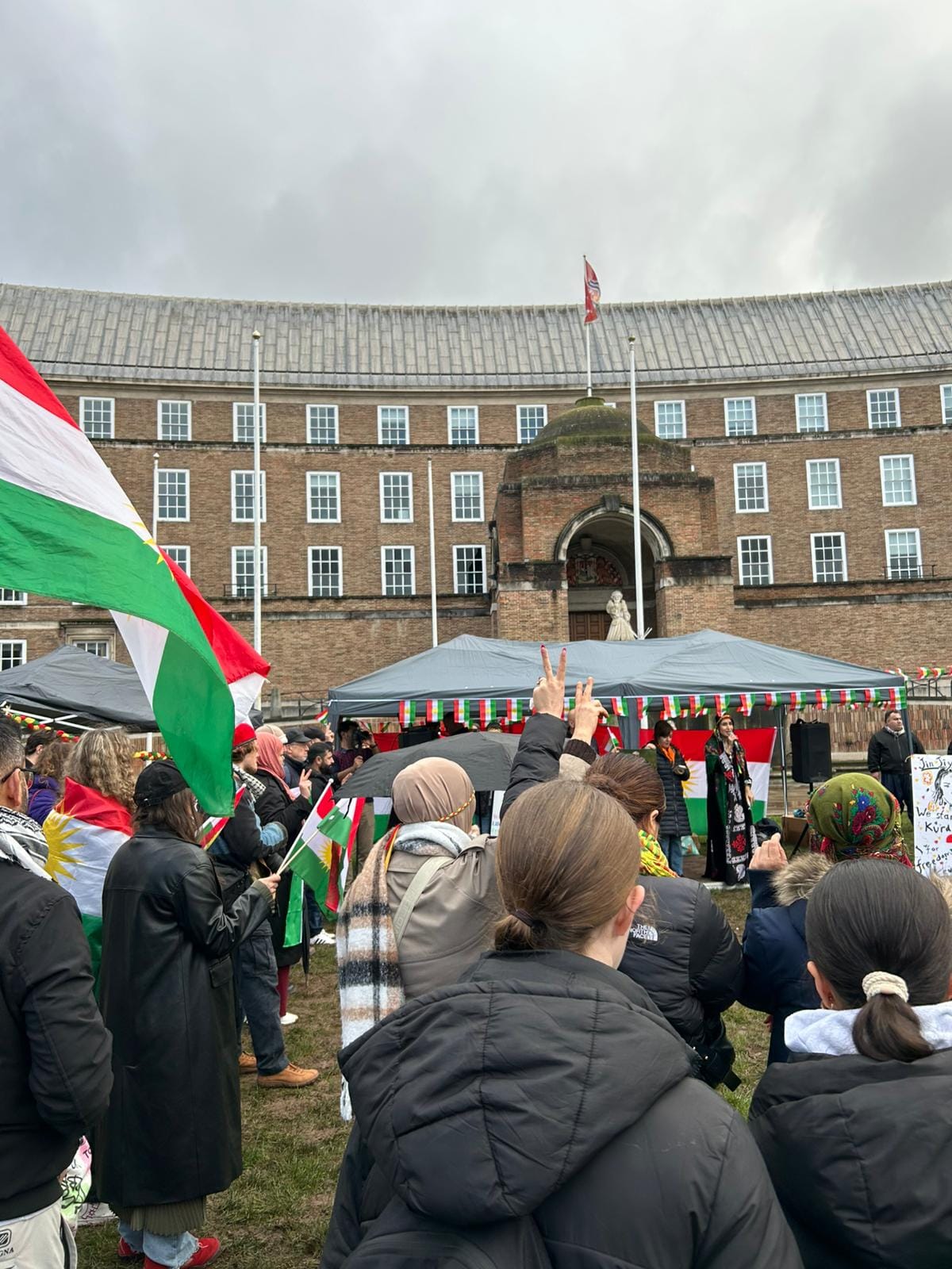 At 2.00pm on Saturday 7 February, gazebos were erected on College Green opposite City Hall as Bristol’s Kurdish community were joined by supporters from across the city.