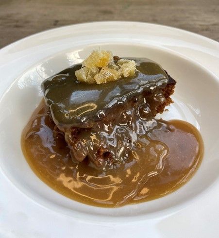 5. Once the sponge is ready, use the pointed end of a wooden spoon (or some similar utensil) to poke holes into the pudding and then pour half of your sauce over the pudding. Serve warm, straight from the dish and with extra sauce to pour over.