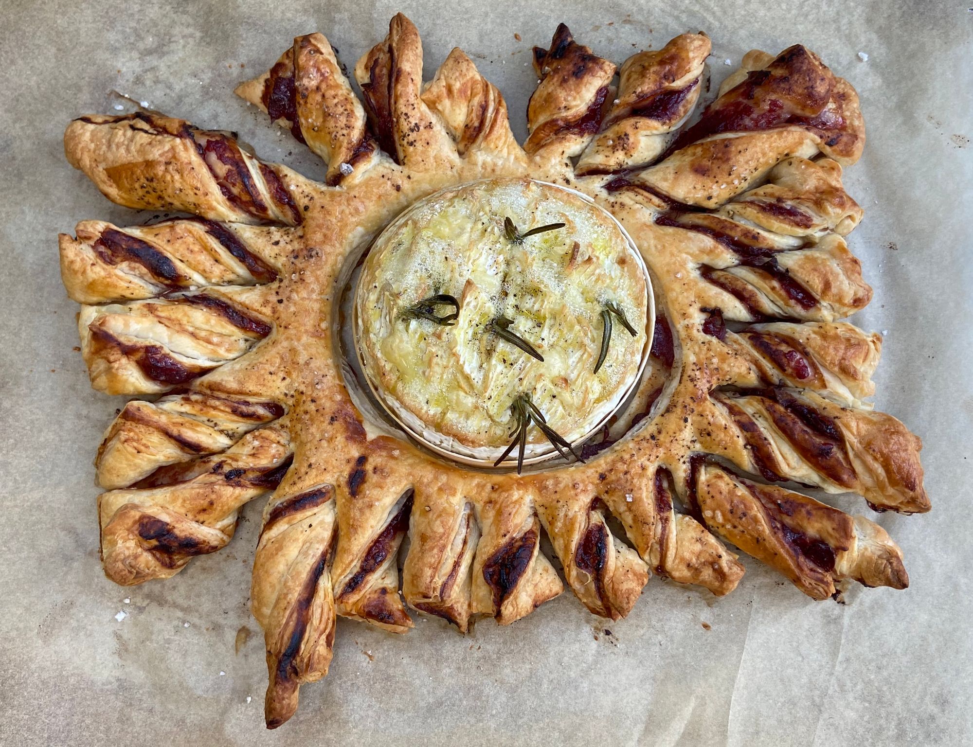 Perfect for a little Christmas get together, this baked camembert with a cranberry pastry wreath looks like something straight out of a 70’s dinner party – super retro, but no less delicious or impressive. Try sprinkling some warming spices (ground clove, all spice, or even orange zest) over the cranberry sauce for an extra festive feel.
