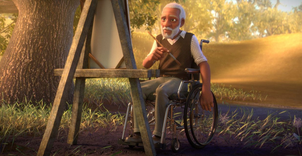 The second in a trilogy of unpublicised short films, Netflix’s Canvas (2020) is a detailed and moving account of loss and recovery. A labour of love for Director Frank Abney III, the nine minute film has been in the works for the past six years, devised and animated in the team’s spare time.