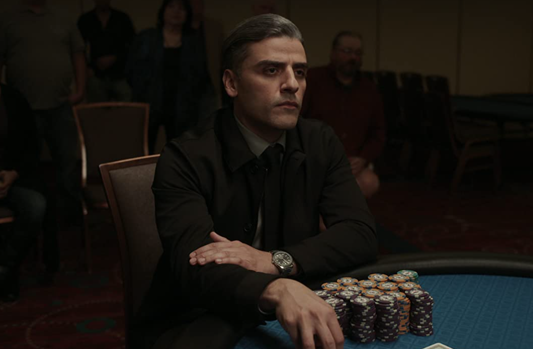William Tell (Isaac) is a self-taught card counter who moves from casino to casino, cheating the system but staying under the radar. An ex-soldier, he runs a military operation, staying in motels, covering all the furniture in sheets, and living out of two suitcases. Although his past is shrouded in mystery, we pick up pieces through a series of prison flashbacks and VR-esque torture camp montages.