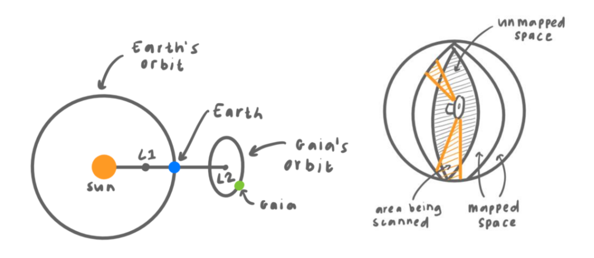 After launching, Gaia entered its operational orbit around the Sun-Earth L2 Lagrange point, where the orbital motion is in equilibrium with the gravitational forces, allowing it to hover. L2 is a very popular destination for observational spacecraft because it is behind the Earth, and therefore, observations are not affected by the Earth’s shadow, which can distort images. However, Gaia did not start taking observations as soon as it reached L2. It required four months of calibration and officially started taking measurements on 25 July 2014 - beginning its 11-year mission.