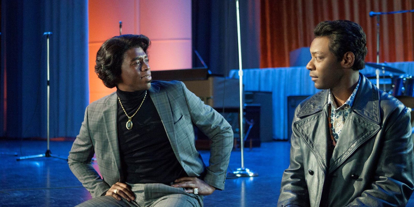 Following a non-linear narrative, accompanied by the breaks in the fourth wall, this biographical musical can be touted as one of Boseman’s powerhouse performances as it realizes his full potential. As yet another African-American figure in pop culture, but this time ‘The Godfather of Soul’ James Brown, Boseman traverses through various hair and character transformations. One of my favourite moments in the film is Brown’s interaction with his manager Ben Bart, discussing how to go about promoting the show where Bart gives him an example of American baseball and Boseman subtly breaks the fourth wall suggesting the reference to his earlier film 42. Playing such an influential figure in pop culture, Boseman cemented himself as an iconic actor and role model for black youth.