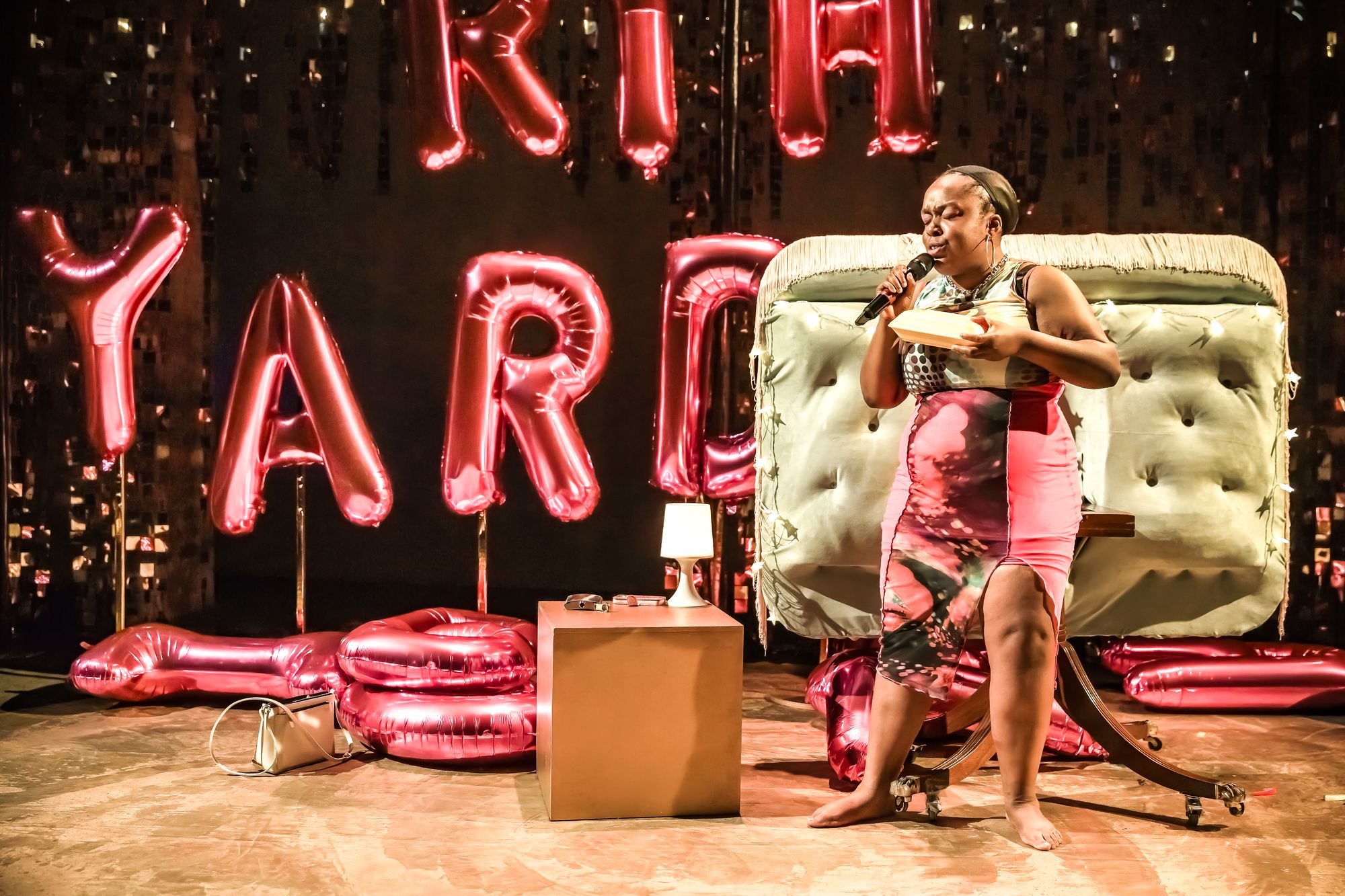 The kebab, getting too drunk at a birthday party and the unbearable realisation you do not like yourself all that much. These are all markers of trauma in early adulthood which Akunna and Odimba explore and stage excellently. It feels like a sparkly mental breakdown on which the audience are trespassing. Lady's stream of consciousness is a train full force, battling through a booze-fueled nightmare, the kind of nightmare where Mr Brightside plays and you have to remember you’re getting older. Cheeky Little Brown’s use of cultural markers to represent that unexplainable 'heaviness of being' into sounds, objects or moments on stage makes that existential dread feel like something we can look at in a less threatening way. A way we, as the audience, can understand whilst still having a laugh.