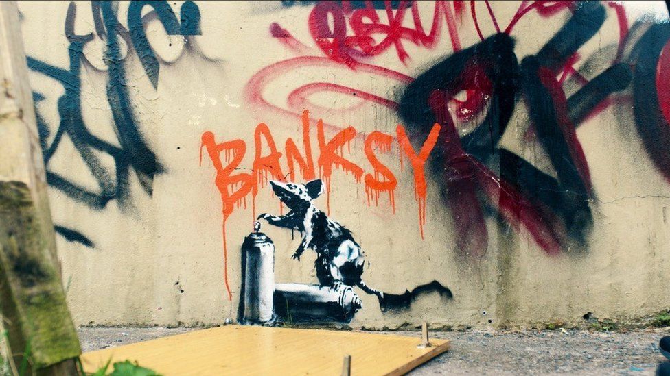 A spokesperson for the show commented: ‘We can confirm that the artwork at the end of The Outlaws was an original Banksy, and that Christopher Walken painted over that artwork during the filming of this scene, ultimately destroying it.’