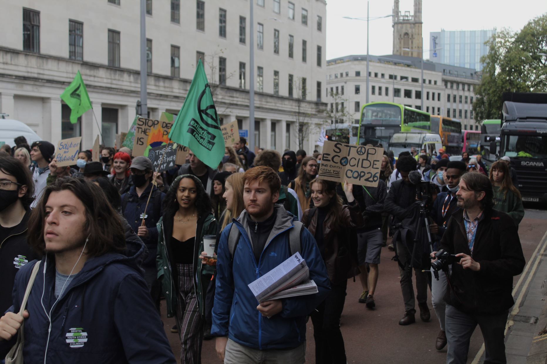 Friday's Climate Strike, held in partnership with Extinction Rebellion Youth Bristol, Bristol SU, Bath SU, UWE SU and Bath Spa SU, focused on circulating information ahead of the COP26 climate conference and rallying against government inaction on climate change.