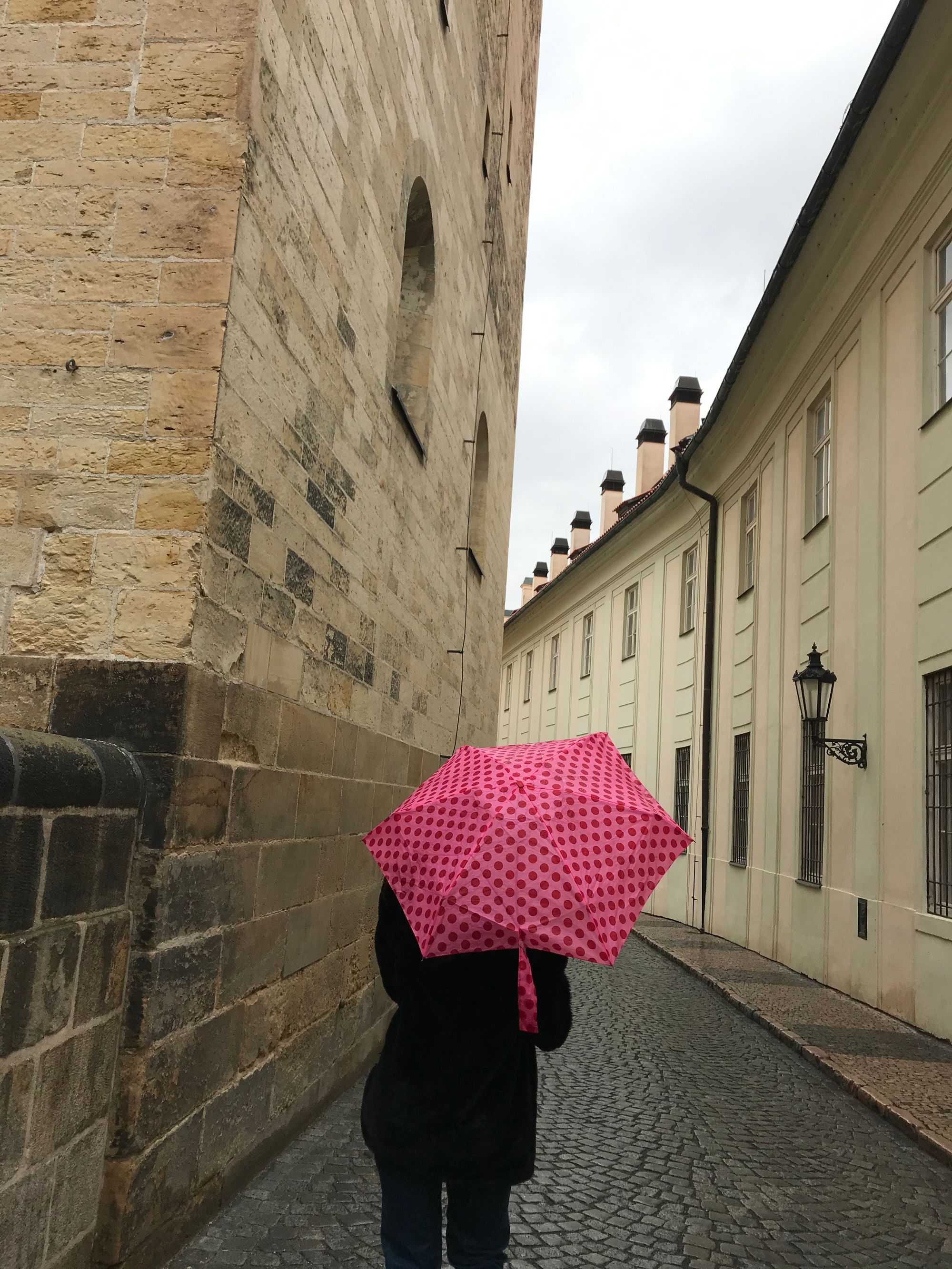 Deciding to indulge ourselves in cultural Prague, we walked over the iconic St Charles Bridge, equipping ourselves with some rather garish umbrellas from a Czech corner store to contend with the March drizzle. We walked to the John Lennon Wall, famous for the mural of John Lennon who was viewed by the Czech youth of the 1980s and early 1990s as a pacifist figure, and decorated with political expressions which the Communist secret police could never rid the wall of for long. Remnants of those political sentiments still peek out behind the graffiti that adorns much of the wall now.