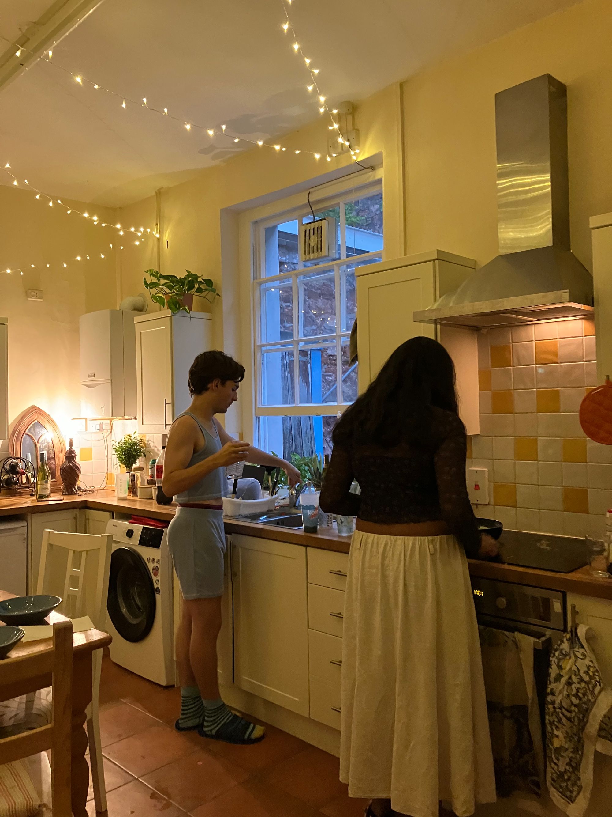 Having grown up in a household where mealtimes were central to family life, communal cooking is one of the few things that I hold to be a sacred practice. Until I left home, the main two rules were: a) if you cook, you cook for everyone, and b) if you’re in the house, you eat dinner together. Though in my years of teen angst this rule felt unnecessary and slightly medieval, I’m now glad that it existed. Communal mealtimes, for me, are an act of grounding and connecting with the people you love. As a student, they help to maintain a routine, and when the budget’s tight they can be a great way of saving money. As we get deeper into the Autumn term and everything begins to feel unsettled, to cook and eat together, for me, is to find a moment of peace in an otherwise hectic student routine.
