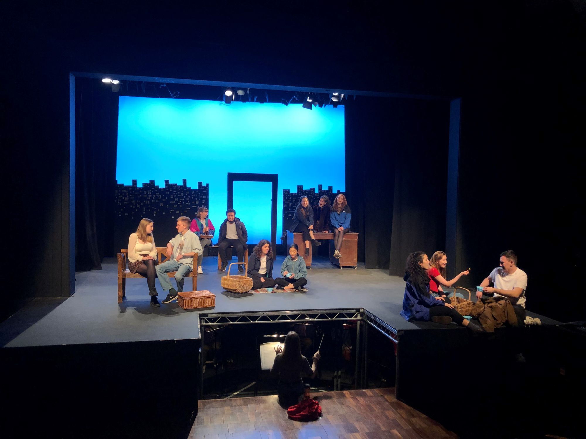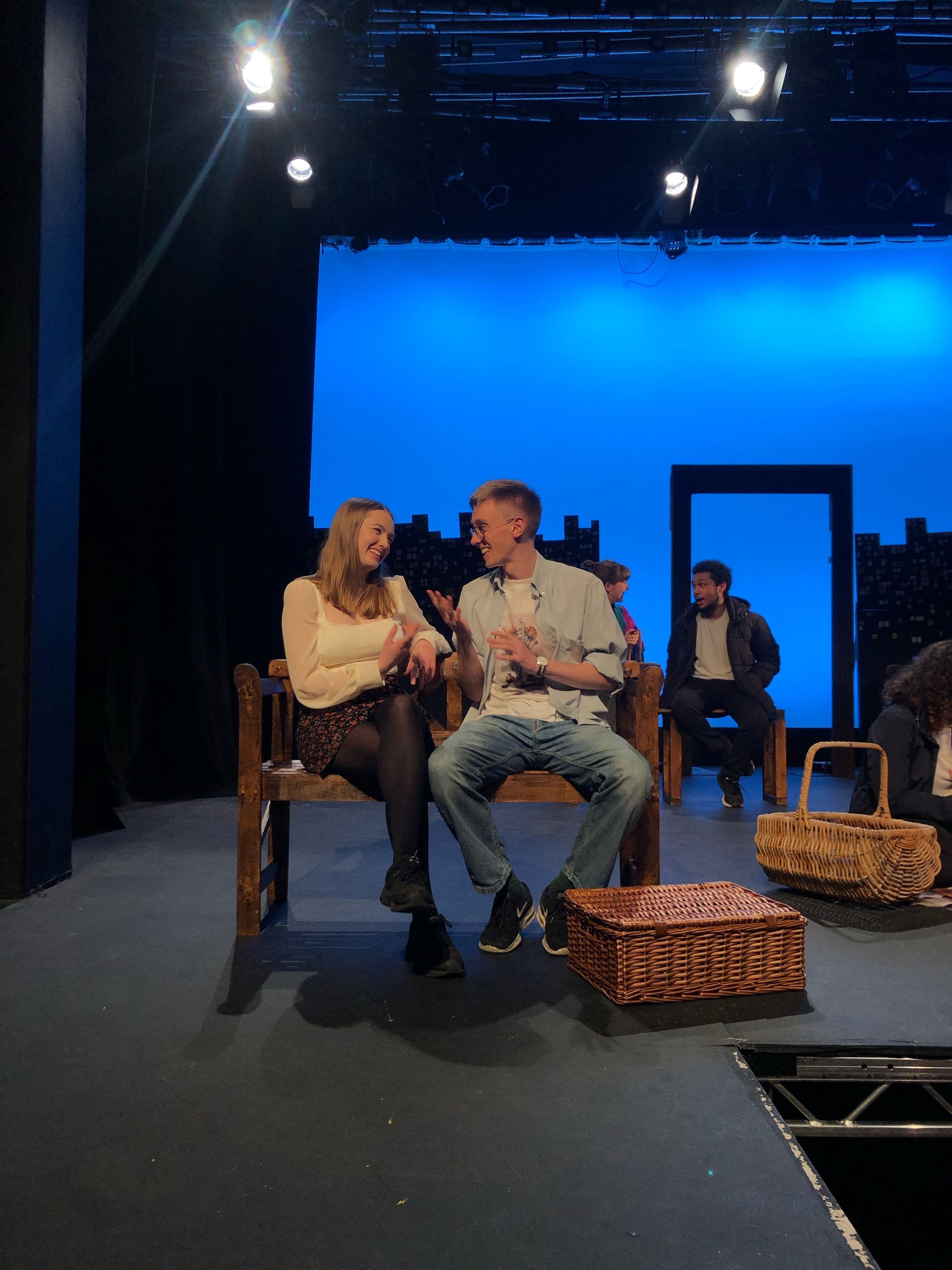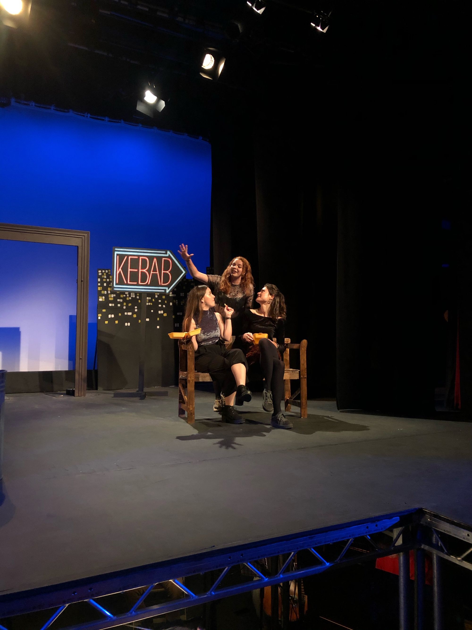 The performance does deal with difficult themes such as depression and suicide. It was especially thoughtful that a collector for Bristol Nightline was present, and attendees given ample disclosure of the heavy topics being portrayed. Dido’s story was treated with professionalism and care. While there were some genuinely hilarious moments in this performance- notably when the cast rushed on stage for a rave and promptly found themselves outside a kebab shop afterwards- Dido’s declining mental health was given the space and seriousness it deserved. The choice for Dido’s suicide to occur off-stage while the rest of the cast stood, dimly lit and singing of her troubles, was a moving and powerful end to the show.