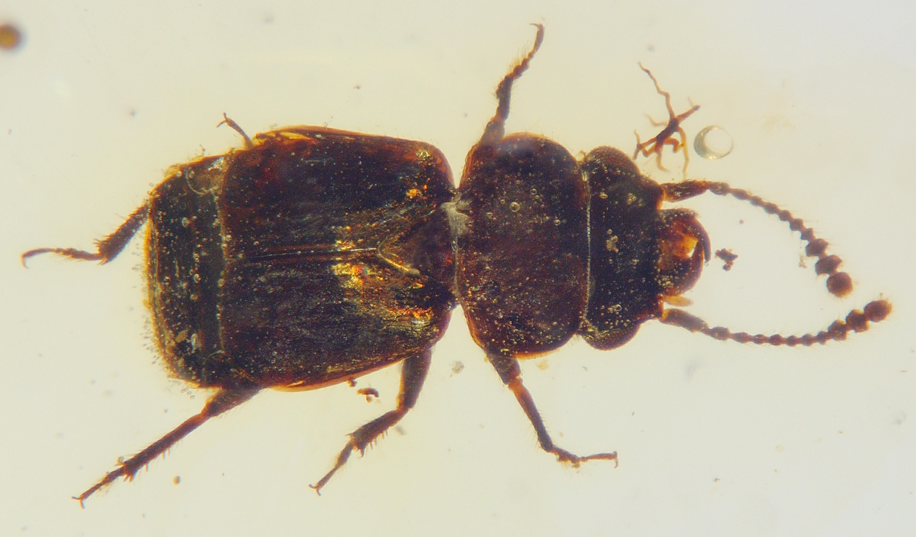 Dorsal view of Pelretes vivificus, a Cretaceous short-winged flower beetle (Kateretidae) from Burmese amber (~99 Ma) | Chenyang Cai