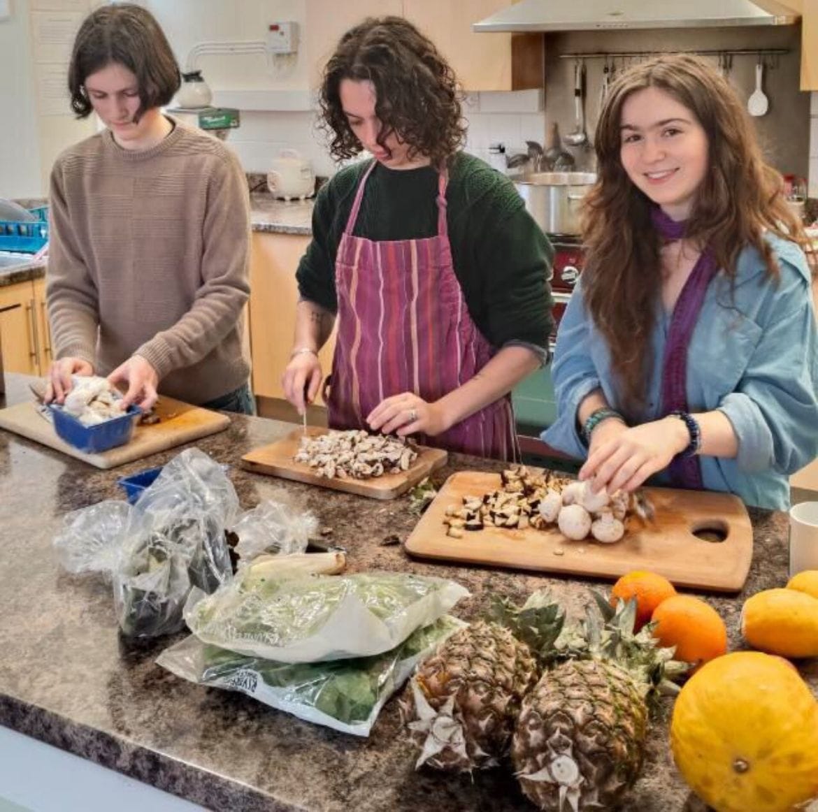 ‘We meet at 10:45 at the Multifaith Chaplaincy on Woodland Road every Tuesday with the produce we have been given and then start cooking up a delicious vegetarian/vegan, free lunch for students.’