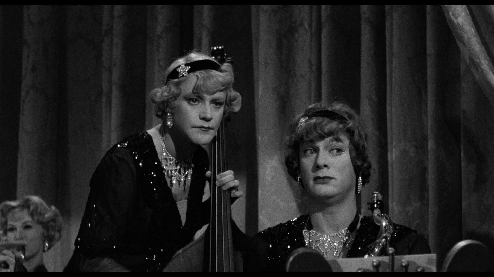The film follows broke jazz musicians Joe (Tony Curtis) and Jerry (Jack Lemmon), who are forced to flee the mob-ridden streets of Chicago after witnessing a mob hit. Desperate, they subsequently join an all-female band headed to Miami, disguising themselves as women, and soon become obsessed with fellow bandmate Sugar (Marilyn Monroe).
