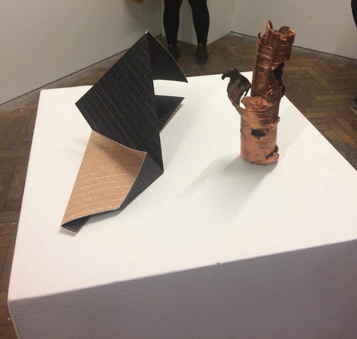 A thread of common elements can be traced between the work in this exhibition through the theme of fragmentation. In particular, the artworks of Niamh Fahy and Prerna Chandiramani stood out in their powerful exploration of connection and absence. Chandiramani’s abstract prints titled 'Silent Stirrings' drew on her feelings of displacement as a British resident with Indian cultural roots. Subtle at first, her works depict the folded shapes of paper, inspired by her old family letters. She stated that they were her attempt to “recapture the importance of heritage and connection.”