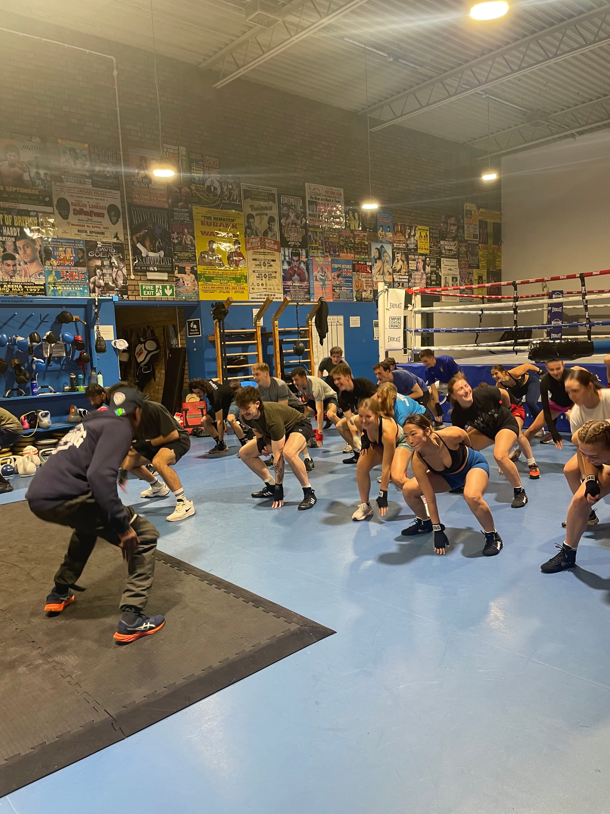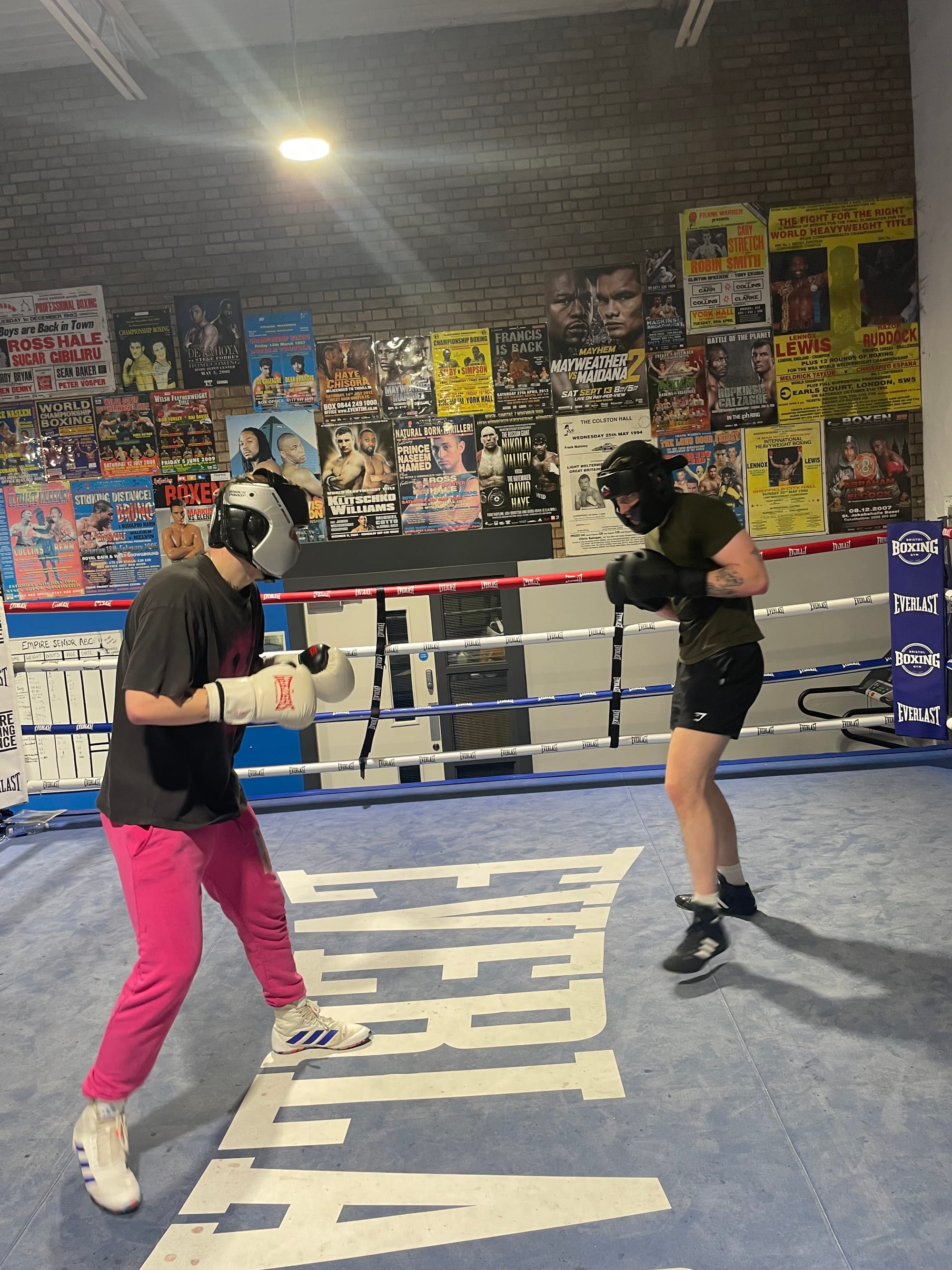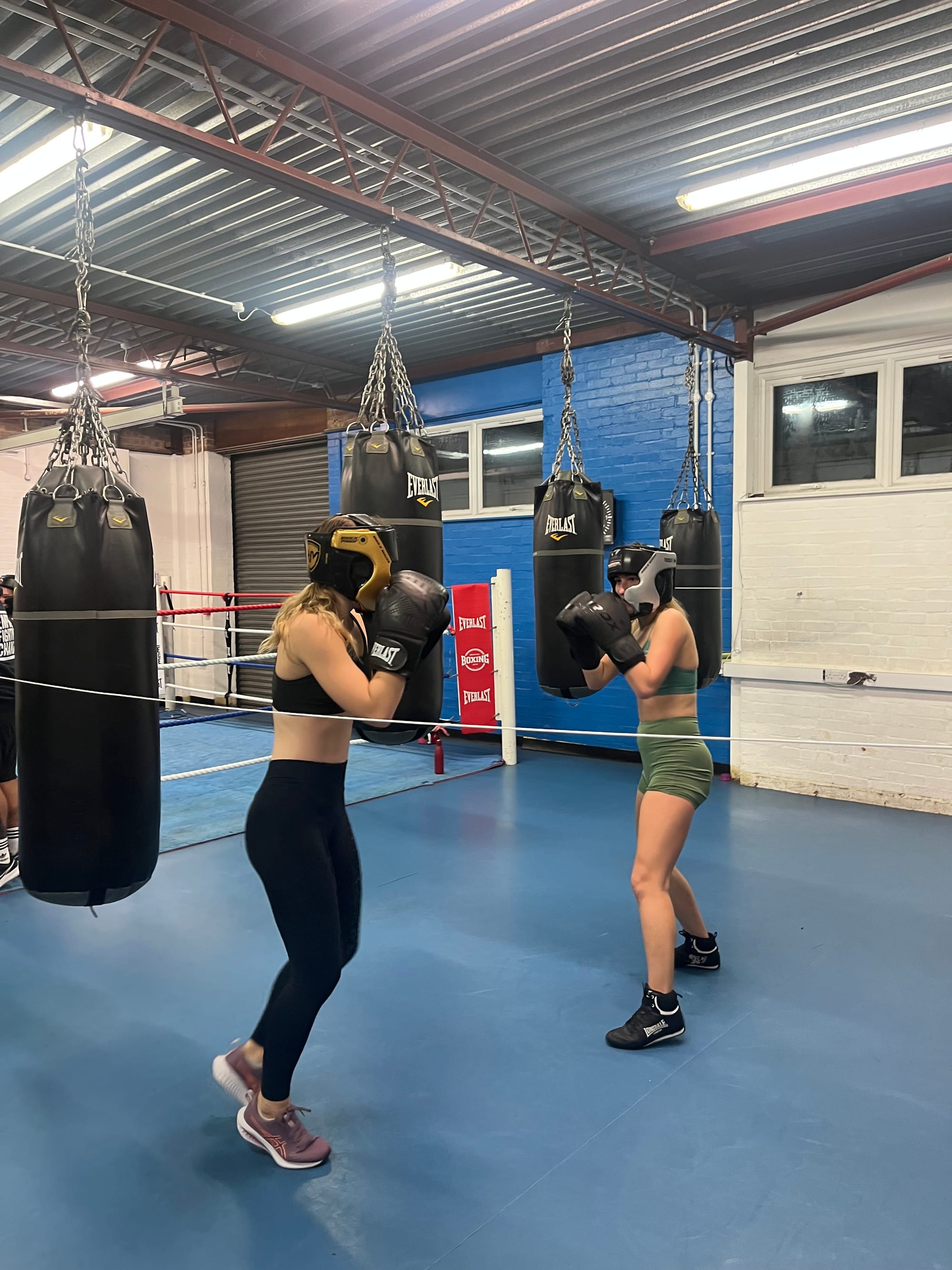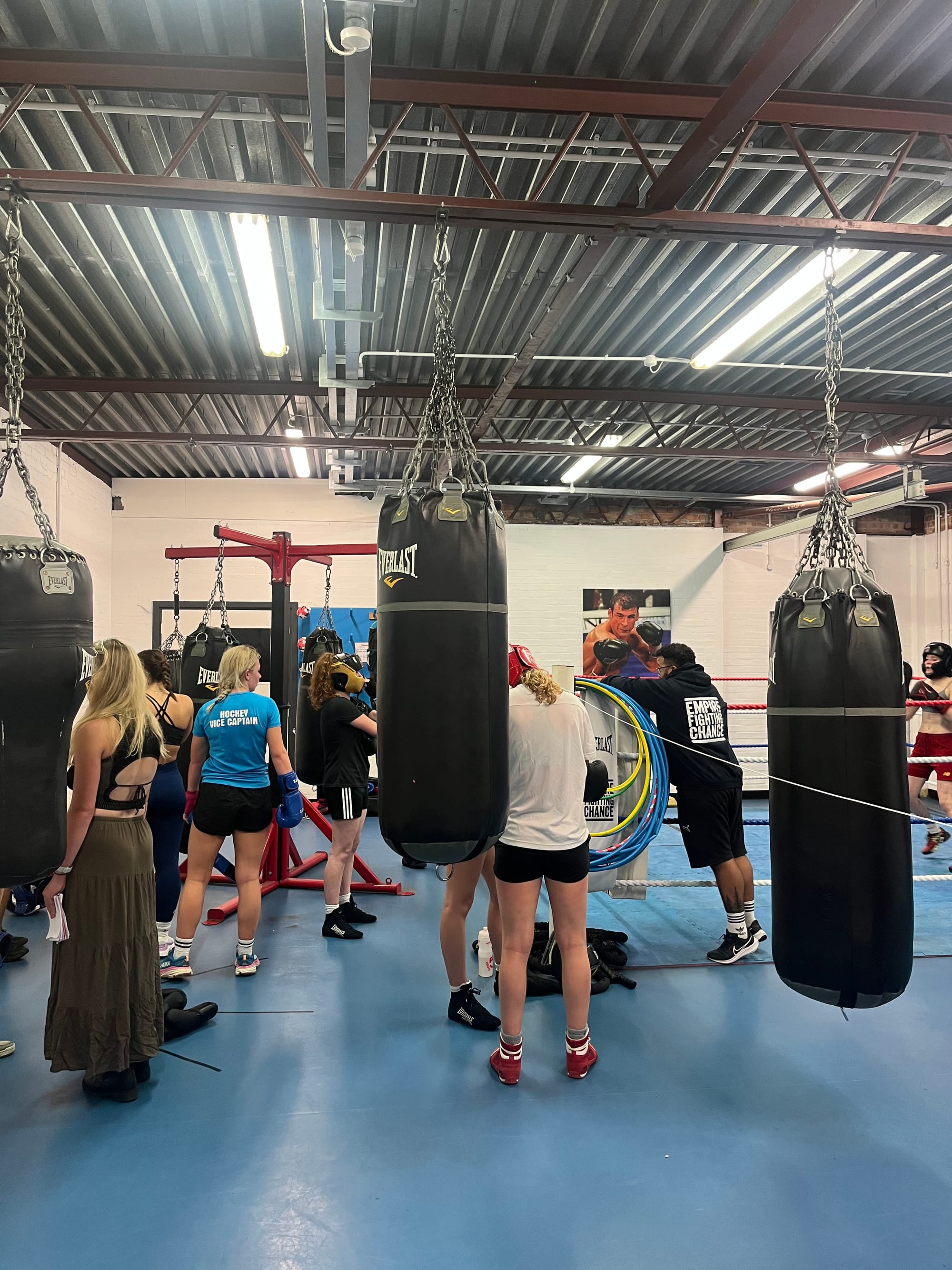 After eight weeks of intensive training, you can see the comfort with which the fighters move around the boxing mats - for a group of 30 people who had never boxed before, this transformation is truly testament to their efforts. After a warm up, which we were very happy to be watching rather than taking part in, the boys and girls swiftly separate and begin sparring - focusing on technique rather than power this close to the big day.