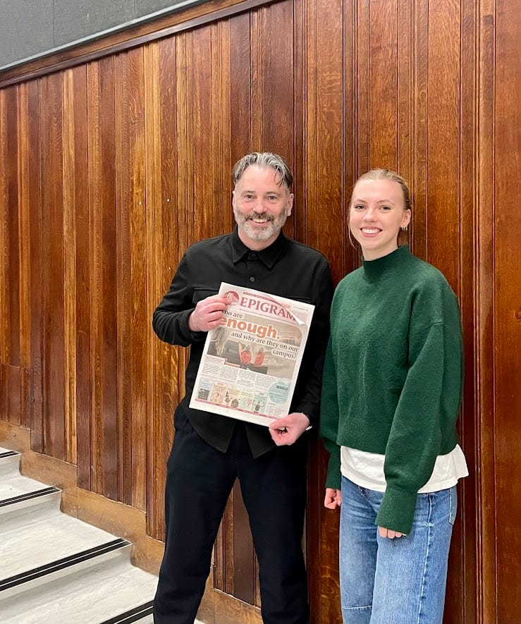 As part of a new direction for Epigram in 2024/25, we hired our fantastic Art Director Julia Mullins, and Resident Designer Alex Hill. With a clear vision and unstoppable work ethic (we’re talking all-nighters that stretched to 7am), they led a full redesign of our print editions (check out the digital copies here!) and social media presence (@epigrampaper_ on Instagram).