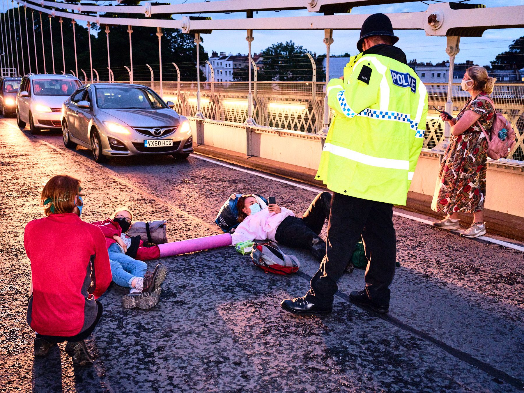 The two XR Youth members began their demonstration on the iconic landmark at 9pm yesterday, Thursday 28 August, by locking themselves together on the road in an ‘arm lock’.