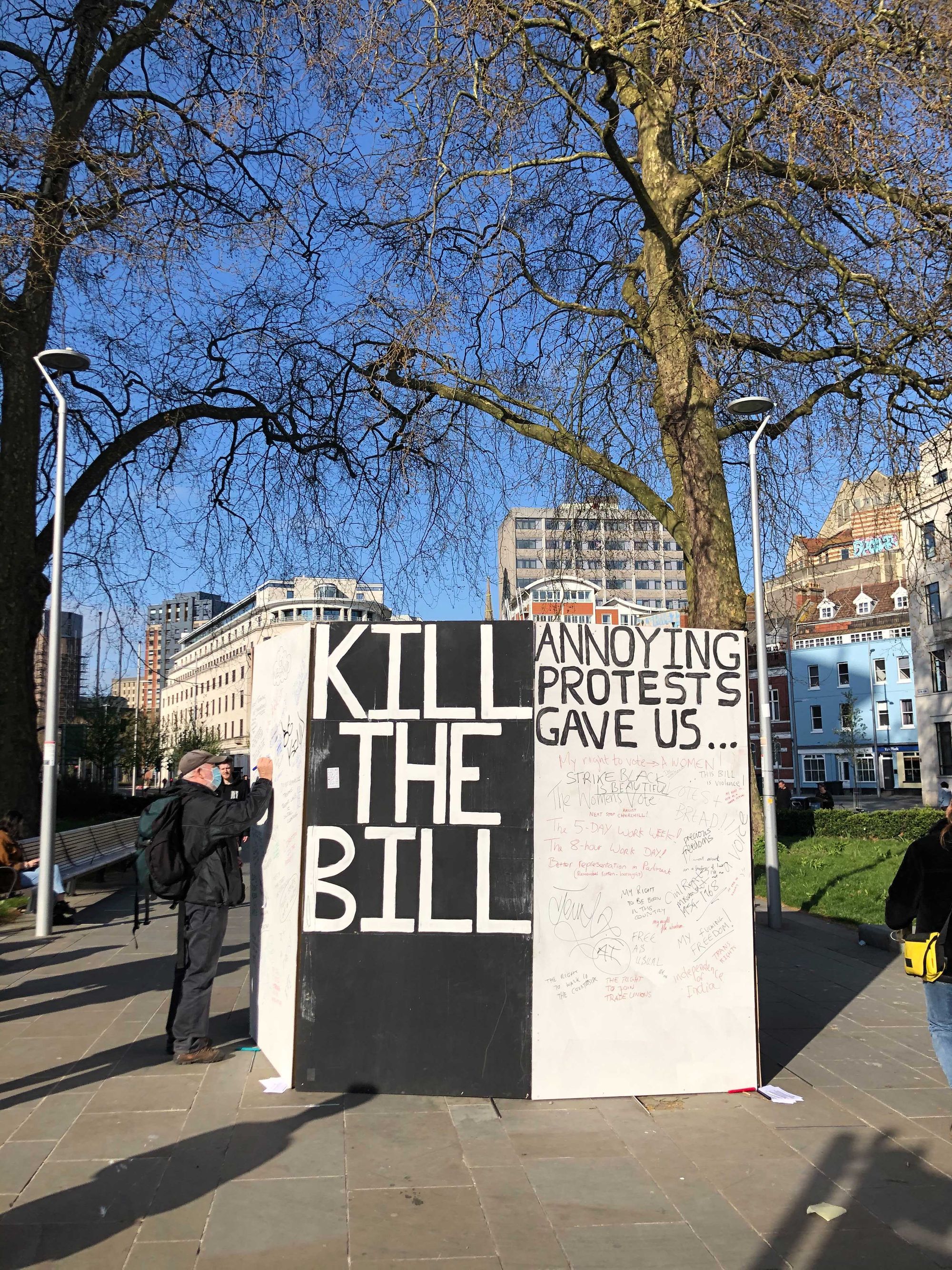 This is the fifth 'Kill the Bill' protest to take place in Bristol in recent weeks. The demonstration has not been organised by any single group or individual but word has spread through social media and messaging groups.