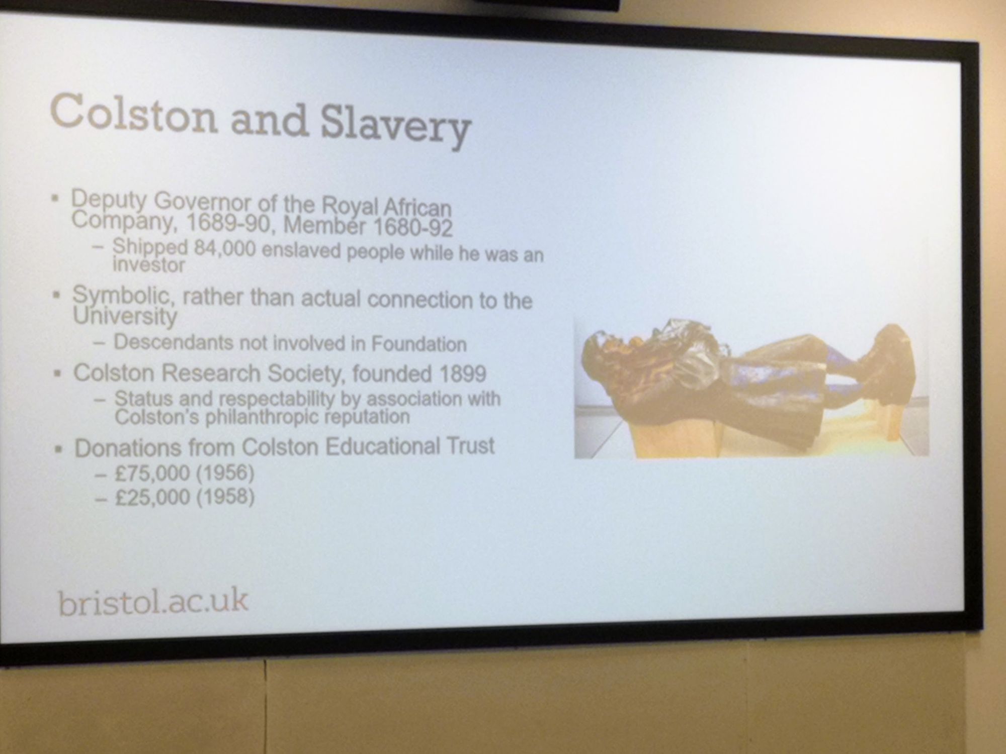 ‘One of the problems with remembering slavery and its legacies in Bristol is that the city simply doesn’t look like slavery. There are no rows of chains, or rotting hulks of ships; instead we just see grand buildings. It is thus essential for historians and others to talk about this past so that it can no longer be forgotten and obscured.’