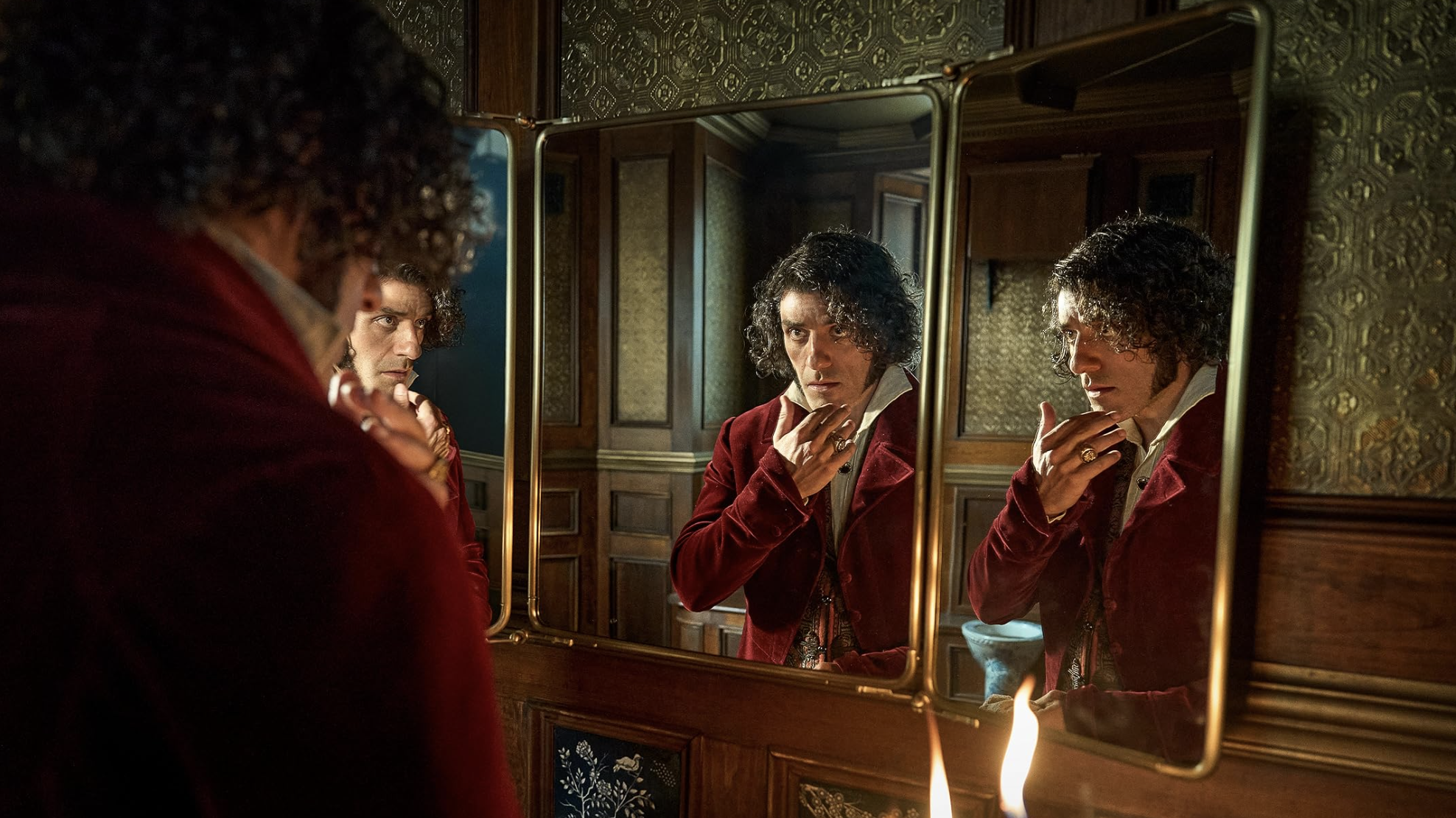 Jacob Elordi, always better suited to playing bizarre, twisted caricatures of stereotypical masculinity than regular human beings, is certainly dead-on casting for a hulking beast in search of his own humanity and handles the switch between being a wounded, sympathetic lost puppy and a terrifying monster with a steady hand. However, the design of the Creature leaves a lot to be desired. The role was initially supposed to be played by Andrew Garfield (who is much closer in age to Isaacs) and Del Toro reportedly spent months tailoring his design to Garfield’s body but then had to scrap the whole thing for the much taller Elordi when Garfield dropped out. I’m afraid this hurriedness shows in the final product as the Creature looks more like the music video for ‘Somebody That I Used to Know’ than Shelley’s original description of the character.
