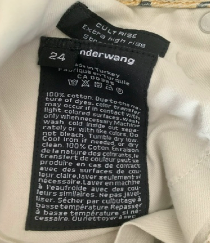 100% Cotton. Denim that is a mixed blend of cotton and polyester, for example, is likely to lose its shape faster than a pure cotton blend because of the nature of plastic. 100% cotton washes better and expands the lifetime of your denim.
