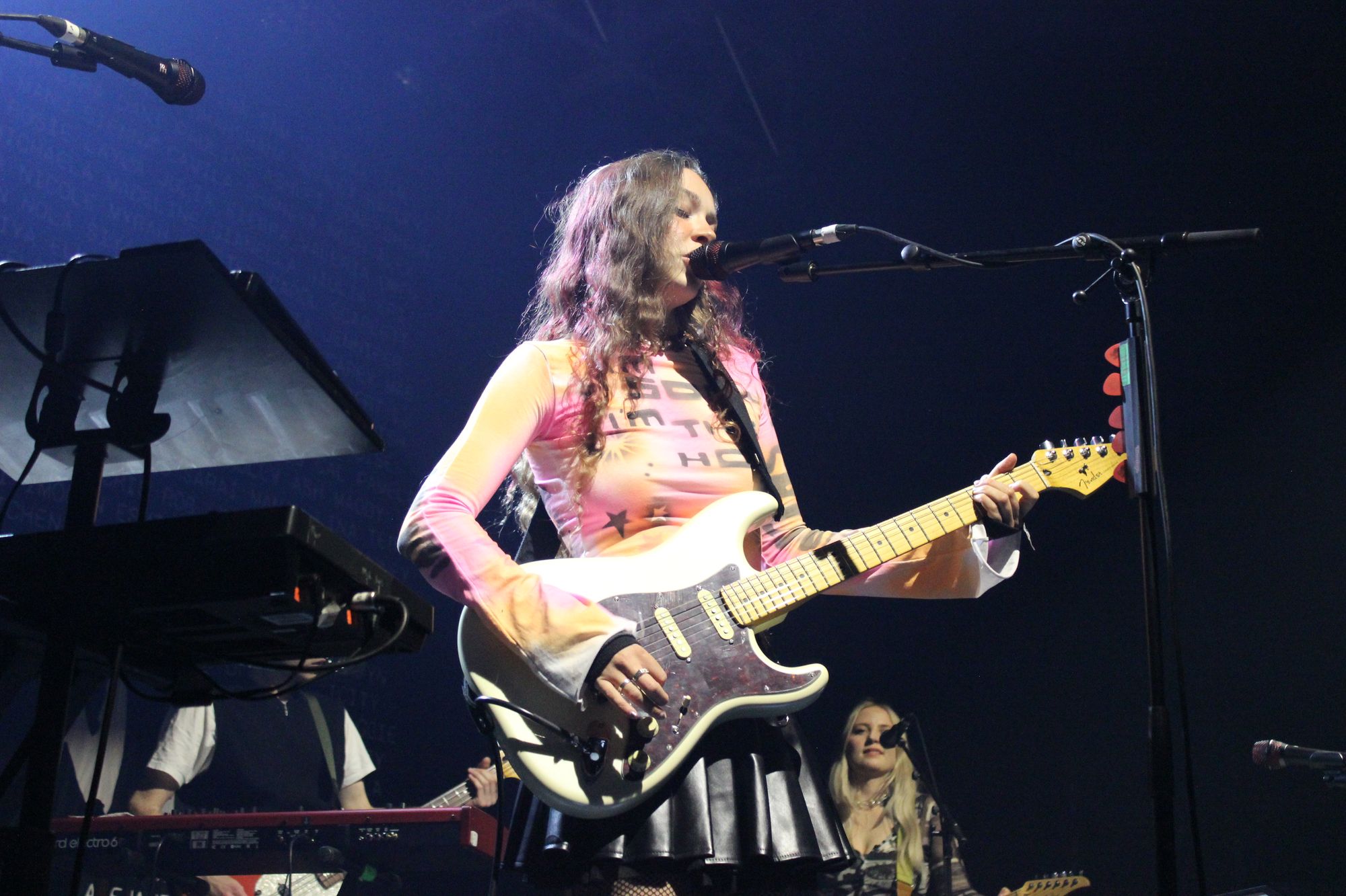 Screams erupted as the stage lights dimmed, rumbling static and distorted vocals swirled around the O2 and Holly Humberstone's band readied on stage. This intro seamlessly faded into the backing vocals of 'The Walls Are Way Too Thin'. This strong opener had heads bopping and the crowd singing along straight from the outset. Humberstone's signature mix of synth work and backing vocals still worked live, with her backing track providing a great backdrop to the raw, driving sound of her band and her guitar, staying true to her sound while also giving her live set a new, grittier edge.