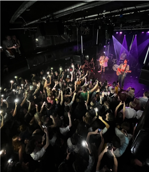 Dressed in a puffy pink dress, live band member Tani who goes by Legwurk, opened with a short set, radiating Still Woozy energy and setting the tone for the rest of the evening. The crowd filled up predominantly with students and young adults, as the second support act from Efé began. She provided a wholesome insight into her bedroom pop aesthetic, whilst enlivening the audience with smiles all round.
