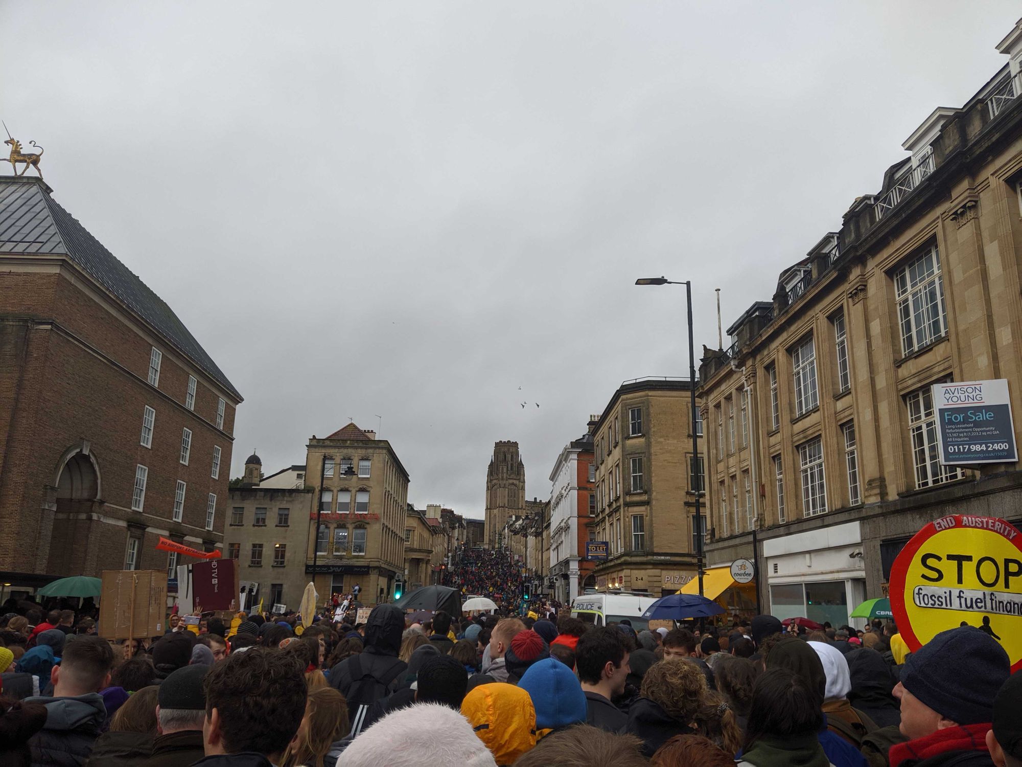 The popularity of the rally - 2.6k people clicked 'going' on Facebook, though the number attending is estimated at much more - prompted safety warnings by police, though the organisers, Bristol Youth Strike 4 Climate, were clear that safety measures were in place.
