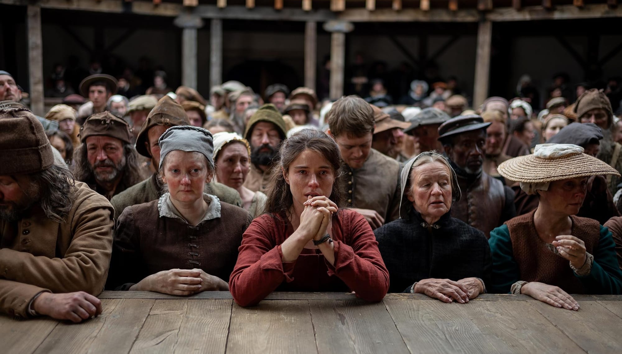 The final act shifts to London and the staging of Hamlet. Agnes initially rejects the play, disturbed by its transformation of her son’s death into public spectacle. The rising music, now more sinister than earlier in the film, overlaps with the bustle of the crowd as she is swept into the Globe Theatre. But gradually she realises Shakespeare has not erased Hamnet, only displaced him. Her son has been given another life, another voice.